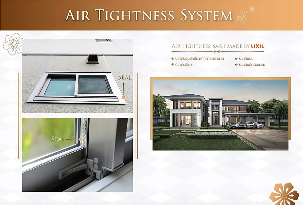 เสริมด้วยระบบ Air Tightness System ซึ่งทำงานควบคู่กับกับ Air Factory System นะครับ ระบบอากาศของบ้านนี้เป็นระบบปิด ที่ปิดสนิททุกรอยต่อด้วยเทคโนโลยี SEAL จากโรงงาน ลดฝุ่น กลิ่น เสียง และแมลงจากภายนอกได้จริง