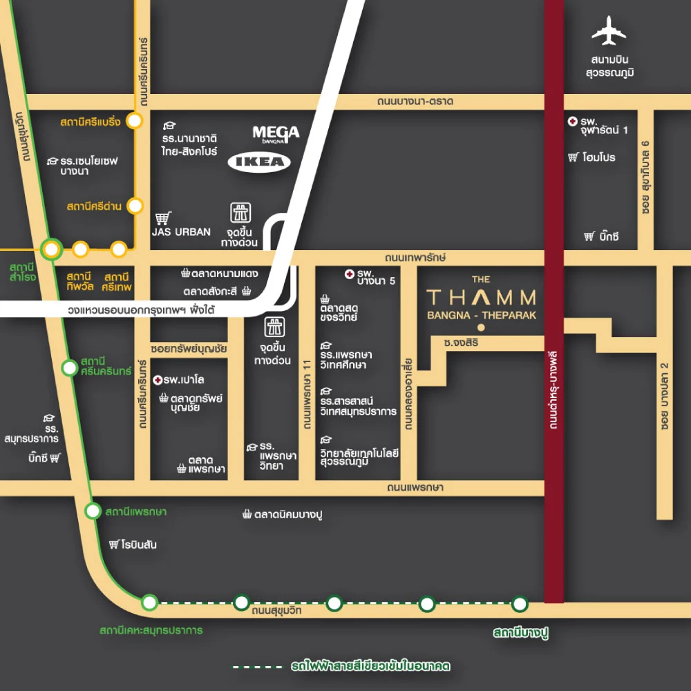 ทำเลที่ตั้ง ถนนทางหลวงชนบท ปท 5013 ต.บึงคำพร้อย อ.ลำลูกกา จ.ปทุมธานี 12150 สิ่งอำนวยความสะดวกรอบโครงการ แบบบ้าน ภาพโครงการ การเดินทาง ถนนนิมิตใหม่ 1.7 กม.ถนนลำลูกกา 1.8 กม.คลอง 6 2.1 กม.ถนนคู่ขนานกาญจนาภิเษก 3.1 กม.ถนนหทัยราษฎร์ 3.2 กม.ทางด่วนฉลองรัช 3.5 กม.BTS สถานีคูคต 10.2 กม.
