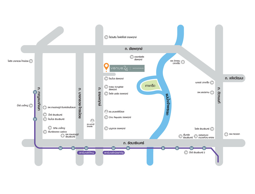 "โครงการ เวนู 24 ราชพฤกษ์ (VENUE 24 Ratchaphruek) จุดเริ่มต้นในการตัดสินใจมอบความฝันให้กับครอบครัว ความสะดวกสบายในการเดินทางของสมาชิกทุกคน การเดินทางที่สามารถเชื่อมต่อได้หลายเส้นทาง ใกล้แหล่งความสะดวกสบาย บ้านน่าอยู่สำหรับทุกคน เป็นหัวใจสำคัญไม่ใช่เพียงการออกแบบให้สวยงาม ดูสบายตาน่าอยู่ และใช้งานได้จริง"