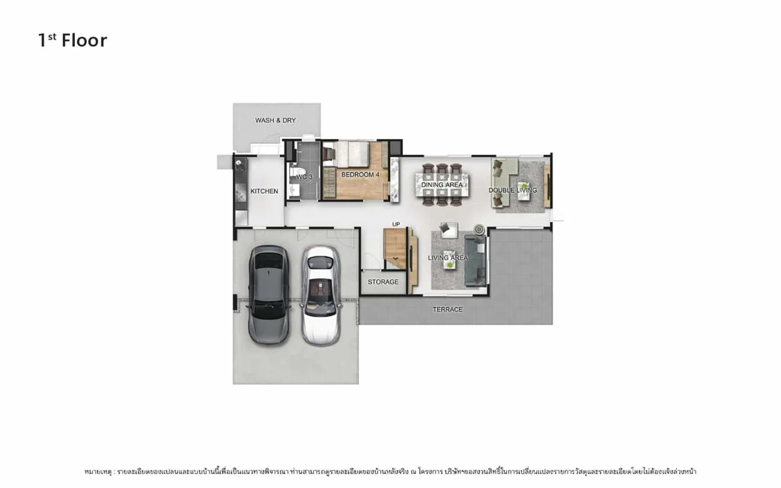 296 ตร.ม. 1 ห้องครัว 5 ห้องนอน 4 ห้องน้ำ 1 ห้องนั่งเล่น 1 ห้องพักผ่อนชั้นบน 1 ส่วนรับประทานอาหาร 3 ที่จอดรถ