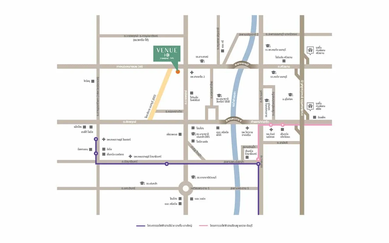 ถนนชัยพฤกษ์ 1.7 กม.รถไฟฟ้าสายสีม่วง (สถานีบางรักน้อยท่าอิฐ) 9.7 กม.รถไฟฟ้าสายสีชมพู (สถานีแยกปากเกร็ด) 8.3 กม.จุดขึ้น-ลงทางด่วน แจ้งวัฒนะ 8.2 กม.จุดขึ้น-ลงทางด่วน ศรีสมาน 13.3 กม.จุดขึ้น-ลงทางด่วน แจ้งวัฒนะ 8.2 กม.ถนนแจ้งวัฒนะ 8 กม.ถนนกาญจนาภิเษก 4.2 กม.ถนนราชพฤกษ์ 2.2 กม.ถนน345 0.1 กม.