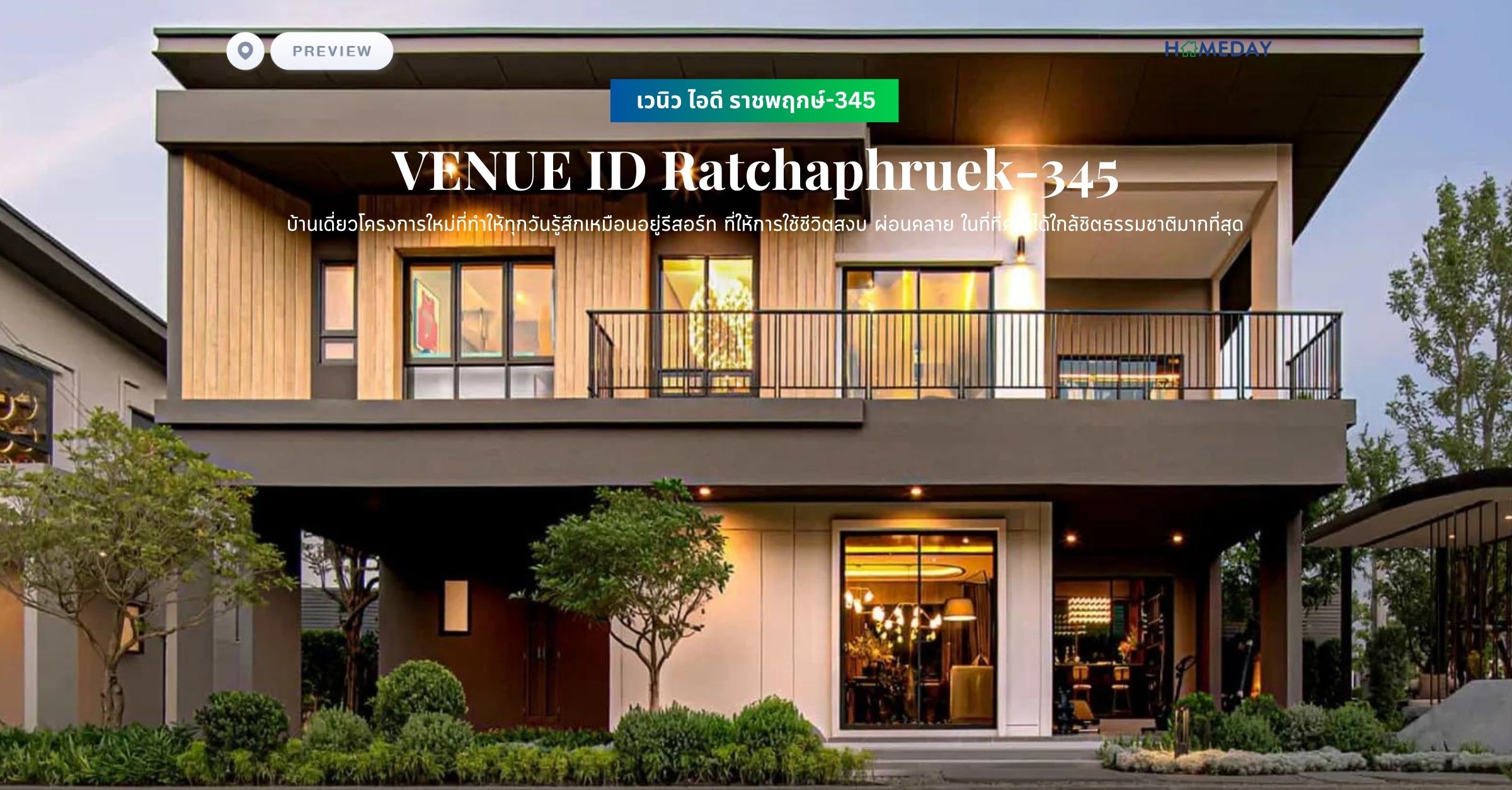 "โครงการ เวนิว ไอดี ราชพฤกษ์-345 (VENUE ID Ratchaphruek-345) บ้านเดี่ยวโครงการใหม่ที่ทำให้ทุกวันรู้สึกเหมือนอยู่รีสอร์ท บ้านสไตล์ Modern Simplicity ที่ให้การใช้ชีวิตสงบ ผ่อนคลาย และสมดุล ในที่ที่คุณได้ใกล้ชิตธรรมชาติมากที่สุด"