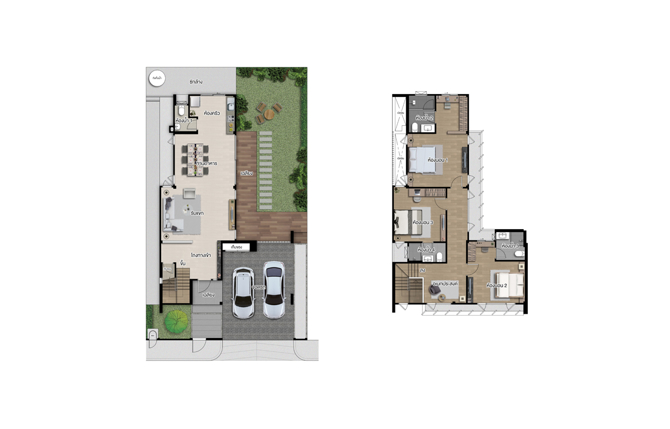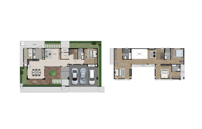 ที่ดิน 64 ตร.ว. พื้นที่ใช้สอย 297 ตร.ม. ฟังก์ชันบ้าน 4 ห้องนอน, 4 ห้องน้ำ และ 3 ที่จอดรถ