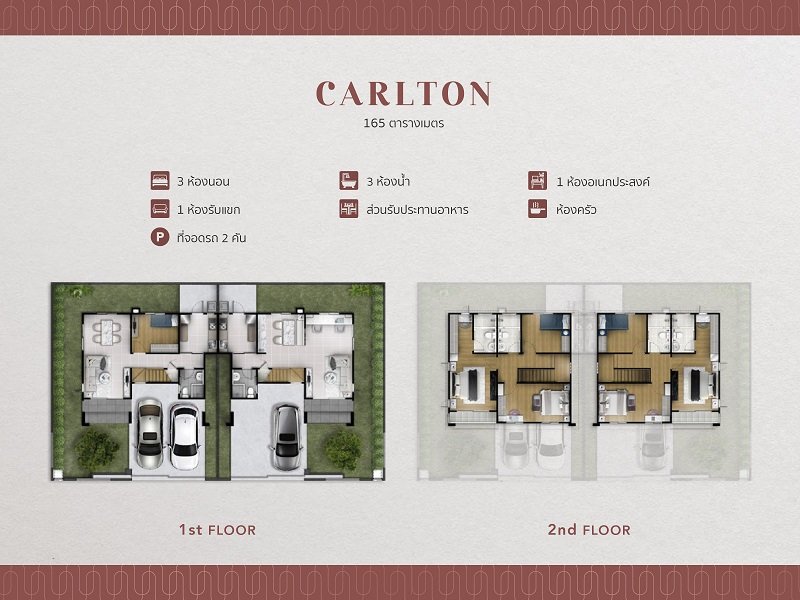 แบบบ้าน : IMPERIAL พื้นที่ใช้สอย 174* ตร.ม. 4 ห้องนอน 3 ห้องน้ำ 1 ห้องครัว 2 ที่จอดรถ แบบบ้าน : EMPEROR พื้นที่ใช้สอย 209 ตารางเมตร** 5 ห้องนอน 3 ห้องน้ำ 1 ห้องครัว 2 ที่จอดรถ