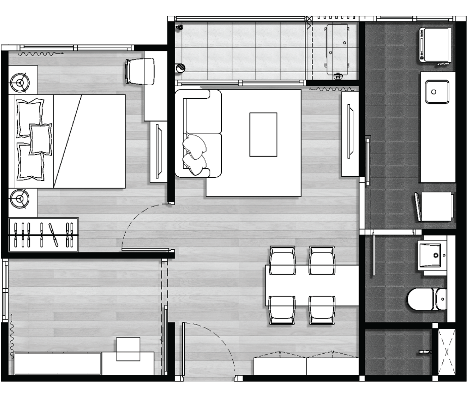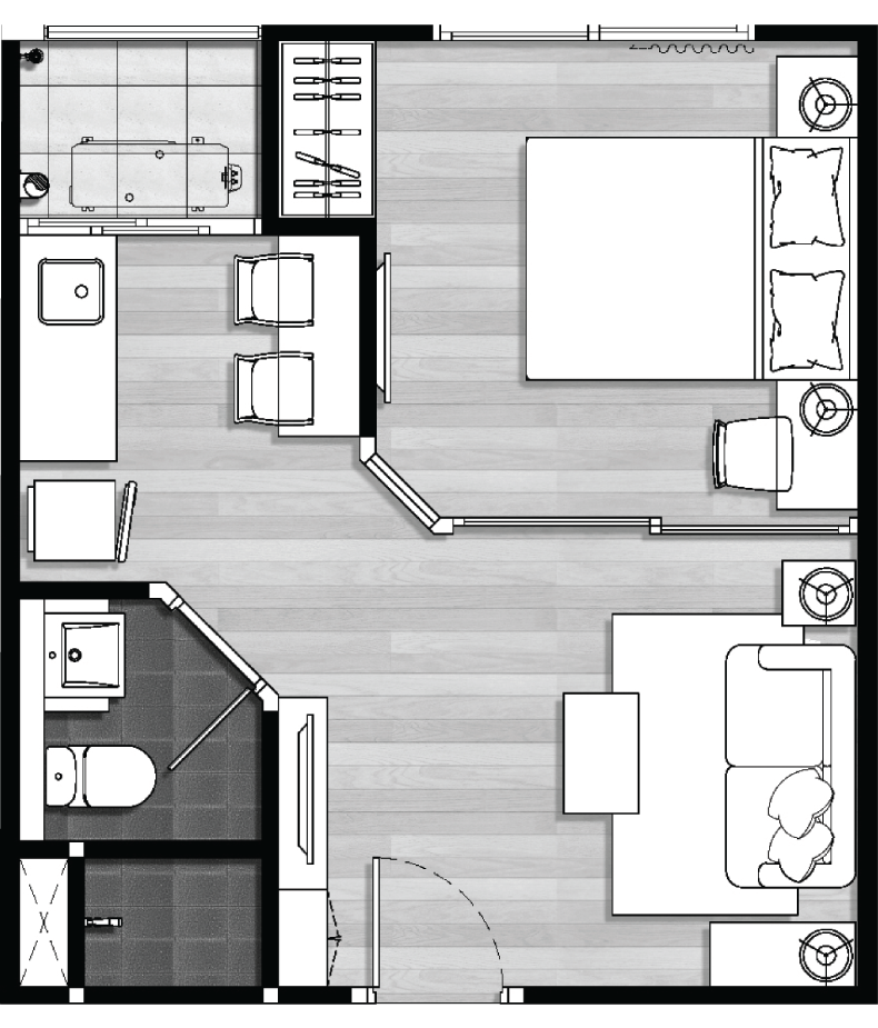 ผังโครงการ ชั้นล่าง : โถงทางเข้าอาคาร, สวนรวมใจ, ฟิตเนสโซน(สระว่ายน้ำ, ห้องออกกำลังกาย)ห้องเรียนรู้, ห้องคุณหนู, ห้องชุดพักอาศัย, ห้องเครื่อง และที่จอดรถชั้น 2-4