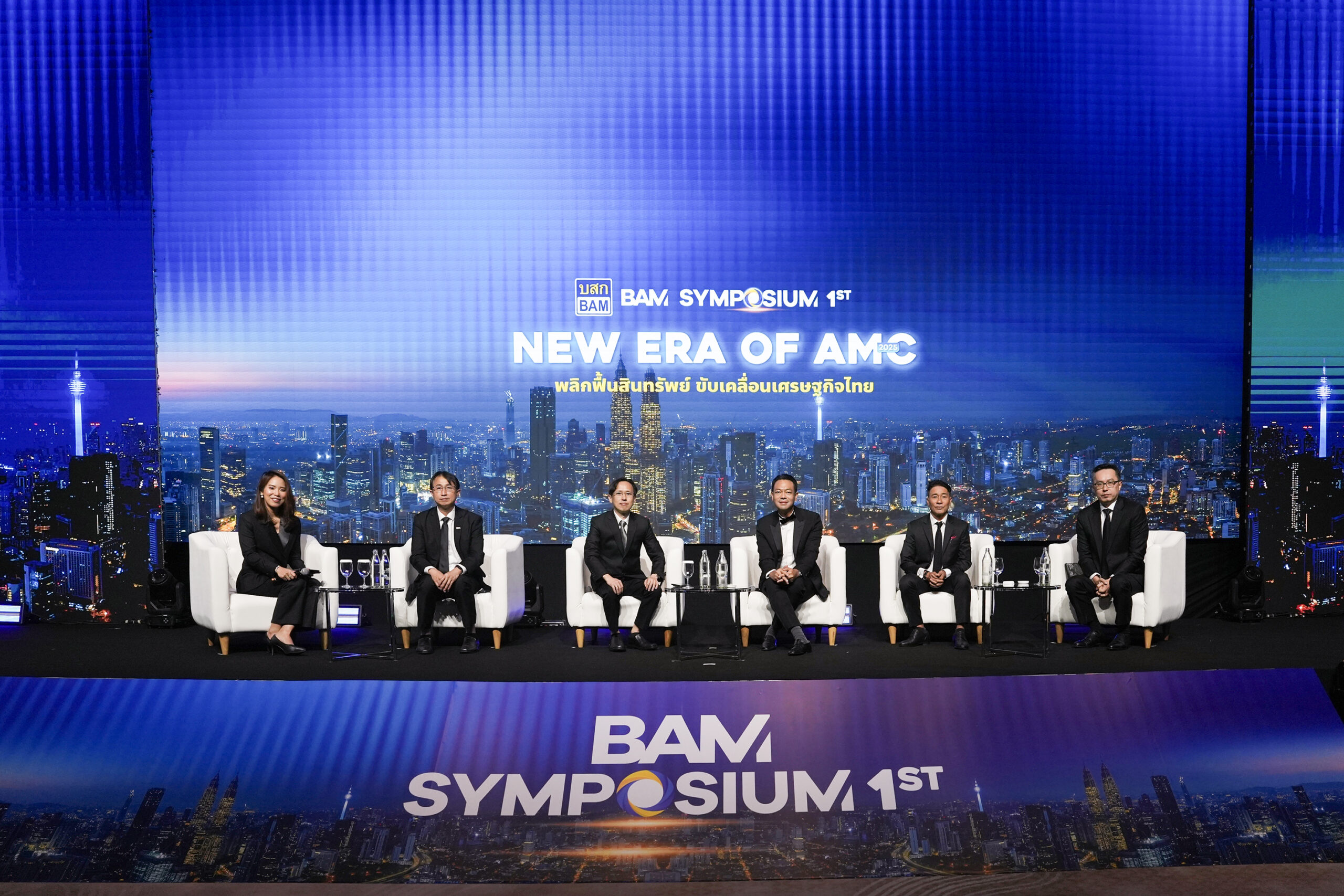 นายกฤษณพงศ์ กิจสนาพิทักษ์ ผู้ช่วยกรรมการผู้จัดการอาวุโส บริษัท บริหารสินทรัพย์สุขุมวิท จำกัด (บสส.) หรือ SAM (ขวาสุด)ร่วมงานเสวนา BAM SYMPOSIUM ครั้งที่ 1 : “ผนึกกำลังขุนพล AMC กู้วิกฤตหนี้ท่วมระบบ” กับ 4 กูรูผู้เชี่ยวชาญในแวดวงธุรกิจบริหารสินทรัพย์(AMC) ดร.รักษ์ วรกิจโภคาทร ประธานเจ้าหน้าที่บริหาร บริษัทบริหารสินทรัพย์ กรุงเทพพาณิชย์(BAM) นายสุทธิรักษ์ ตรัยชิรอาภรณ์ ประธานเจ้าหน้าที่บริหาร บริษัท เจ เอ็ม ที เน็ทเวอร์ค เซอร์วิสเซ็ส นายสุขสันต์ ยศะสินธุ์ ประธานเจ้าหน้าที่บริหาร บริษัท ชโย กรุ๊ป และนายทวี กุลเลิศประเสริฐ ประธานเจ้าหน้าที่บริหารบริษัท ไนท คลับ แคปปิตอล โฮลดิ้ง ซึ่ง SAM ถือได้ว่ามีบทบาทสำคัญในการเป็นเครื่องมือของภาครัฐในการดูดซับหนี้เสียของระบบสถาบันการเงิน ร่วมเป็น Ecosystem เพื่อเป็นทางออกและ จิ๊กซอว์ตัวสำคัญในการแก้ไขวิกฤตปัญหาหนี้ครัวเรือนและเศรษฐกิจของประเทศให้เกิดเสถียรภาพอย่างยั่งยืน ณ ห้องนภาลัย แกรนด์ บอลรูม โรงแรมดุสิตธานี กรุงเทพฯ