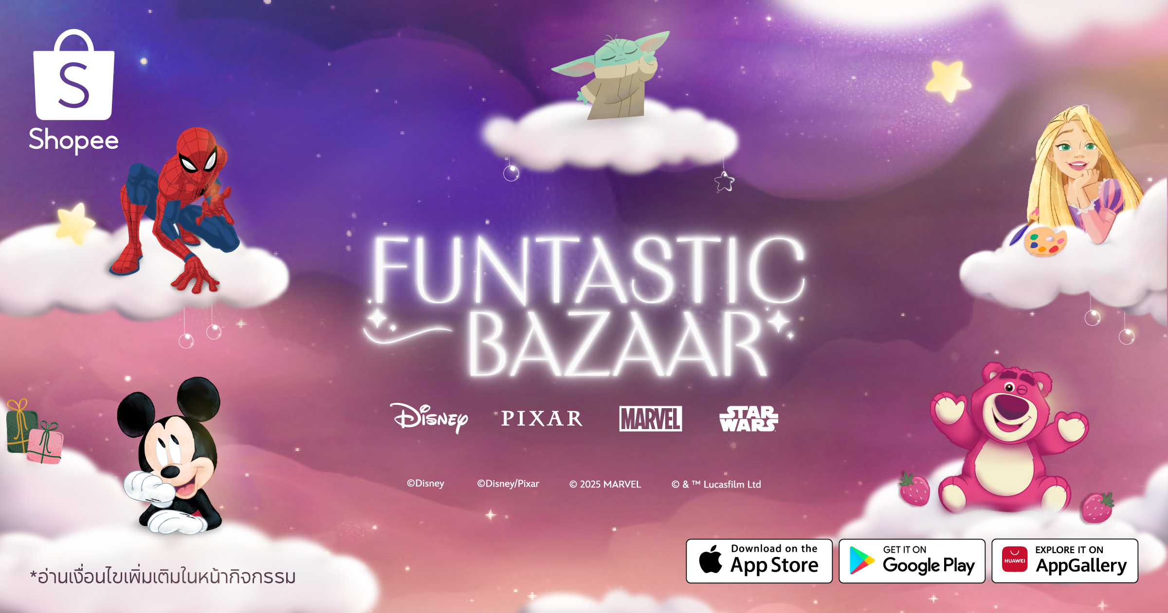 ความร่วมมืออย่างต่อเนื่องสู่ปีที่ 7 ส่งแคมเปญ “Funtastic Bazaar 2025” ต้อนรับมหกรรมช้อปปิงแห่งปี Shopee Super Brand Day เดินหน้ายกขบวนสินค้าลิขสิทธิ์จากแบรนด์ดังรวมกว่า 8,000 รายการ พร้อมอัดแน่นดีลและโปรโมชันพิเศษตลอด 3 เดือนเต็ม ระหว่างวันที่ 1 สิงหาคม – 31 ตุลาคม 2568 เอาใจแฟนดิสนีย์และนักช้อปทั่วประเทศให้ได้สนุกกับการเลือกซื้อสินค้าดิสนีย์ในราคาสุดคุ้มอย่างจุใจ