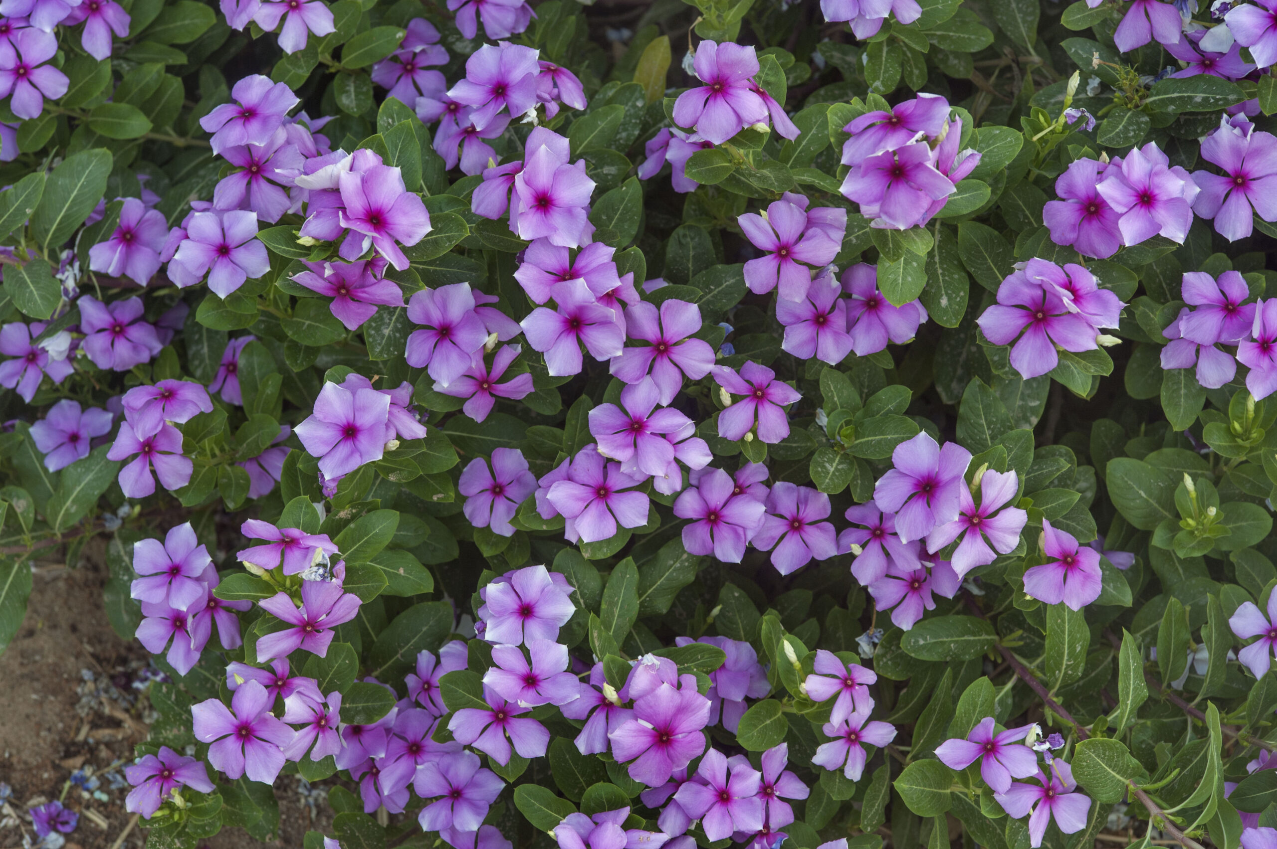 แพงพวยแคระหรือ Catharanthus roseus เป็นดอกไม้ที่มีดอกเดี่ยวออกตามซอกใบที่ปลายกิ่ง ดอกสีม่วงอ่อนมีขนาดเล็กกว่าแพงพวยทั่วไป กลีบเลี้ยง 5 กลีบรูปสามเหลี่ยม ด้านนอกมีขนสั้นนุ่ม กลีบดอกโคนเชื่อมติดกันเป็นหลอดปลายแยกเป็น 5 แฉก