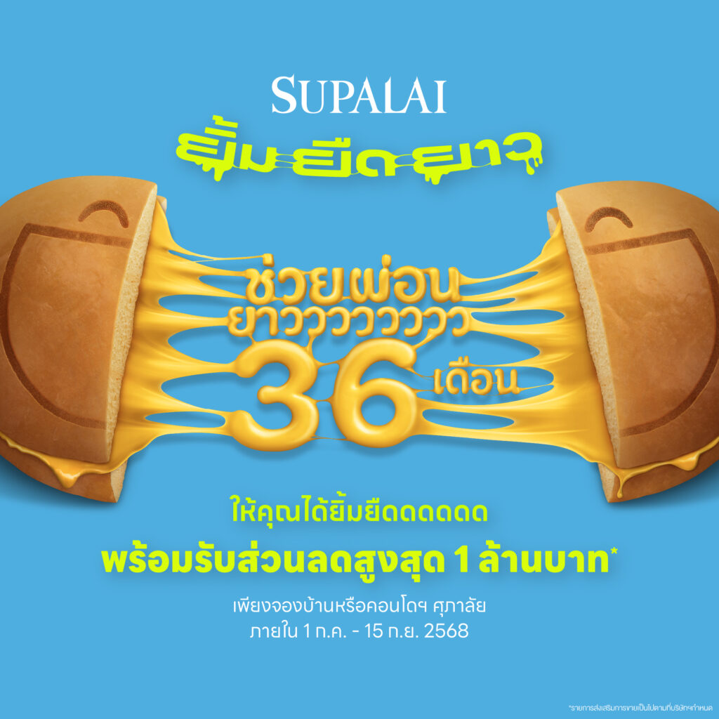 มองหาบ้านหรือคอนโดมิเนียมพร้อมอยู่…เตรียมยิ้มให้กว้าง ศุภาลัยส่งโปรโมชัน “ยิ้ม ยืด ยาว” ช่วยผ่อนยาว 36 เดือน รับส่วนลดสูงสุด 1 ล้านบาท* ที่จะช่วยให้การมีบ้านใหม่ไม่ใช่เรื่องหนักใจอีกต่อไป เลือกสิทธิพิเศษ ที่ใช่ ในสไตล์ที่ชอบ! Choice A – ผ่อนสบายกระเป๋า นานสูงสุด 36 เดือน มูลค่าสูงสุด 360,000 บาท* Choice B – ฟินกับของแต่งบ้าน เลือกช้อปสนุกกับ Voucher จาก IKEA, Index, HomePro, Central พร้อมฟรี! ค่าโอนกรรมสิทธิ์ มิเตอร์ไฟฟ้า-น้ำ ค่าส่วนกลาง 1 ปีแรก* (*เงื่อนไขเป็นไปตามที่บริษัทฯ กำหนด) และหากลูกค้ากู้ ไม่ผ่านยินดีคืนเงิน พร้อมยืดรอยยิ้มให้ทุกครอบครัว เริ่มตั้งแต่วันที่ 1 ก.ค.-15 ก.ย. 2568 เท่านั้น ลูกค้าที่สนใจ บ้านเดี่ยว บ้านแฝด ทาวน์โฮม และคอนโดมิเนียม สามารถเยี่ยมชมโครงการ ณ สำนักงานขายศุภาลัยทั่วประเทศ และสามารถตรวจสอบรายชื่อโครงการบ้านและคอนโดมิเนียมที่เข้าร่วมรายการได้ที่ www.supalai.com และ Facebook : Supalai หรือสอบถามข้อมูลเพิ่มเติมโทร.1720