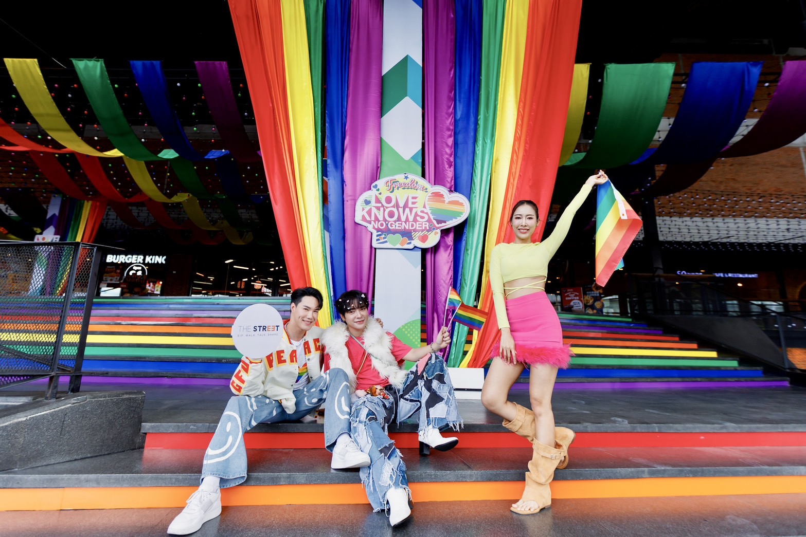 “Rainbow Point” ตั้งอยู่บริเวณประตูทางเข้าชั้น 1 ของศูนย์การค้าฯ ออกแบบมาเพื่อเป็นพื้นที่ให้ทุกคนสามารถถ่ายภาพ แชร์ความรู้สึก และส่งต่อข้อความแห่งพลังใจ ไม่ว่าจะเป็นกลุ่ม LGBTQ+ เอง หรือพันธมิตรผู้สนับสนุน (Ally) ทุกคนสามารถแสดงออกถึงความภาคภูมิใจในตัวตนของตนเองได้อย่างเต็มที่ โดยหวังว่าพื้นที่นี้จะเป็นอีกหนึ่งจุดเริ่มต้นสำคัญของการพูดคุยเกี่ยวกับความหลากหลายและความเท่าเทียมในสังคม และเป็นก้าวแรกของการยอมรับซึ่งกันและกัน นอกจากนี้ ยังเชิญชวนผู้มาเยือนร่วมส่งต่อพลังบวกในโลกโซเชียลมีเดีย ด้วยการติดแฮชแท็ก #Thestreetpride เพื่อร่วมเป็นส่วนหนึ่งในการขับเคลื่อนสังคมให้เป็นพื้นที่ที่ทุกคนรู้สึกเป็นส่วนหนึ่งและได้รับการยอมรับอย่างแท้จริง