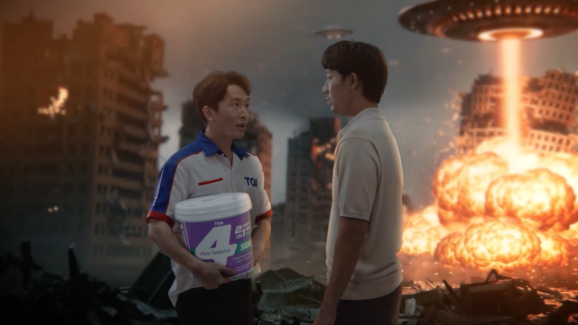โดยหัวใจหลักของแคมเปญคือภาพยนตร์โฆษณาชุด “โลกไม่แตก…แต่ข้ออ้างของเราต้องหมดไป” ที่เล่าเรื่องผ่านฉากหายนะจากอุกกาบาตตกและยานอวกาศบุกเมือง แต่กลับตั้งคำถามที่ทรงพลังว่า “แล้วถ้าโลกไม่แตก…เราจะยังมีข้ออ้างอะไรที่จะไม่ดูแลบ้านให้ดีที่สุด?” การสื่อสารนี้ใช้เรื่องเหนือจริงมาอุปมาแทน “ข้ออ้างในชีวิตจริง” เพื่อสื่อสารอย่างตรงประเด็นว่า โลกไม่จำเป็นต้องพัง บ้านถึงจะได้ซ่อม ซึ่งสะท้อนบุคลิกของแบรนด์ TOA ที่ทันสมัย กล้าพูด และกล้าท้าทายความคิดของผู้บริโภค และถูกขยายผลไปในทุกช่องทางการสื่อสาร ไม่ว่าจะเป็น Digital OOH, Transit, BTS Wrap, Social Media และ Mass Media โดยมีการหยิบยกข้ออ้างยอดฮิตของคนไทยมาสะท้อนเป็นคอนเทนต์ที่เรียบง่ายแต่ตรงประเด็น