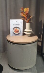 ความยั่งยืนของ V-ZUG ไม่ได้จำกัดเพียงแค่การใช้งานเท่านั้น แต่มาพร้อมกับความคิดสร้างสรรค์ เช่น Adora Table โต๊ะที่ผลิตจากถังซักผ้ารุ่นเก่า ซึ่งได้รับการแปลงโฉมใหม่เป็นงานดีไซน์ที่โดดเด่น สะท้อนให้เห็นว่าการออกแบบ การใช้งาน และความรับผิดชอบต่อสิ่งแวดล้อม สามารถผนวกรวมกันได้อย่างกลมกลืน