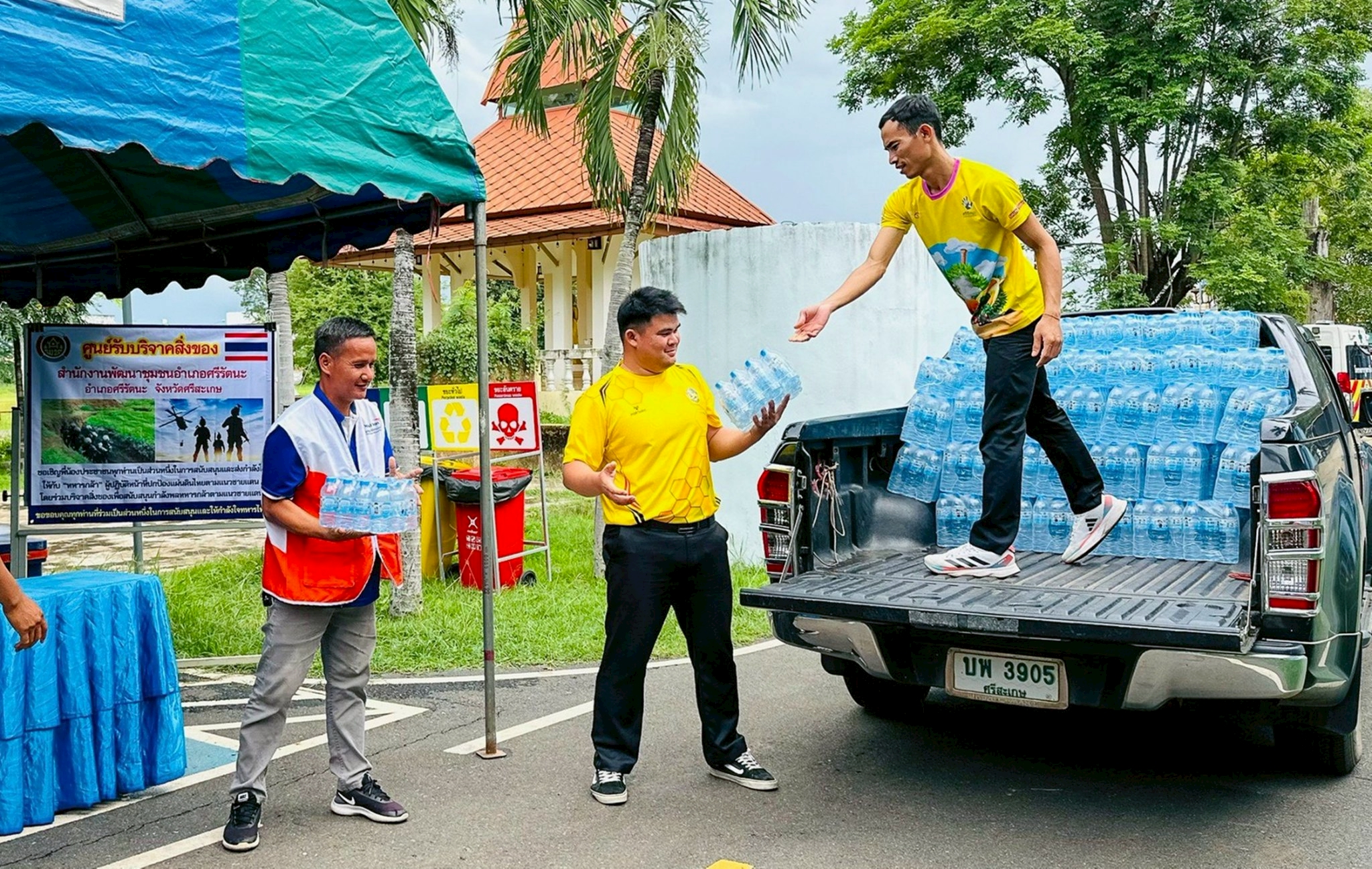 การสนับสนุนในช่วงบรรเทาทุกข์ฉุกเฉิน : สนับสนุนสิ่งของจำเป็นเร่งด่วน แก่ประชาชนในศูนย์อพยพ เช่น น้ำดื่ม ยารักษาโรค วัตถุดิบ ประกอบอาหาร และอาหารแห้ง เพื่อบรรเทาความเดือดร้อนเบื้องต้น